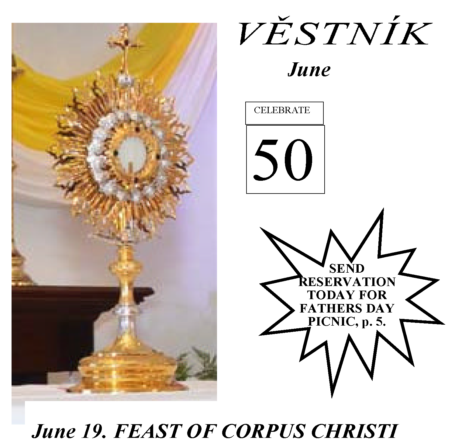 MASS: 1 pm - outside STEAK OR CHICKEN DINNER FROM THE GRILL 2:30- 4:00 BEER AND BEVERAGES FOR SALE. MUSIC, CONVERSATION, TOMBOLA SWIMMING FOR THOSE WHO WISH. (Bring suits and towels.) Reservations required. Send coupon (below) by June 11. Don‘t miss this! Our Mass on Father‘s Day, [...]